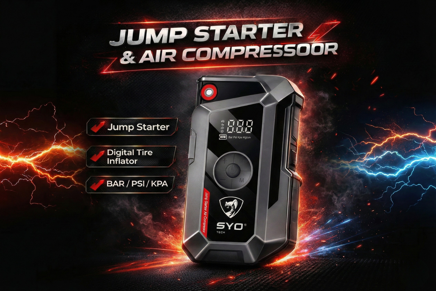 SYOTECH DK002 TAKVİYE+LASTİK ŞİŞİRME 18000MAH KISA DEVRE KORUMALI (AKÜ OLMADAN ARABA ÇALIŞTIR)
